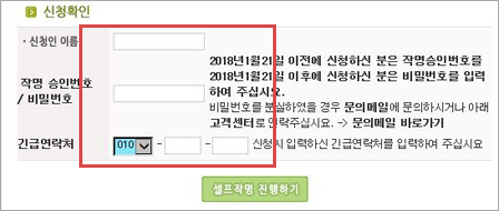 2) ½Åû½Ã ±âÀçÇϽнÅûÀÎ À̸§, ºñ¹Ð¹øÈ£, ¿¬¶ôó¸¦ ÀÔ·Â ÈÄ ¼¿ÇÁÀÛ¸í ÁøÇàÇϱâ¹öưÀ» Ŭ¸¯ÇÕ´Ï´Ù. ¸¸¾à °ü·ÃÁ¤º¸¸¦ ÀØÀ¸¼Ì´Ù¸é °í°´¼¾ÅÍ·Î ¿¬¶ôÁÖ¼¼¿ä.