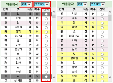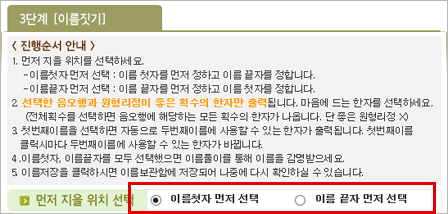 8) À̸§Ã¹ÀÚ¿Í À̸§³¡ÀÚ¸¦ ¸ðµÎ ¼±ÅÃÇϽŠµÚ [À̸§Ç®ÀÌ]¹öưÀ» Ŭ¸¯ÇϽøé À̸§°¨¸íÀ» ¹Þ¾Æº¸½Ç ¼ö ÀÖ½À´Ï´Ù.